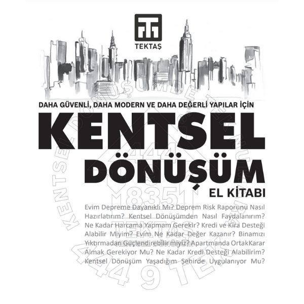 Tektaş Kentsel Dönüşüm olarak binlerce binada yapmış olduğumuz çalışmalar sonucu tecrübemizi SİZİN için KENTSEL DÖNÜŞÜM EL KİTABI’ nda topladık.